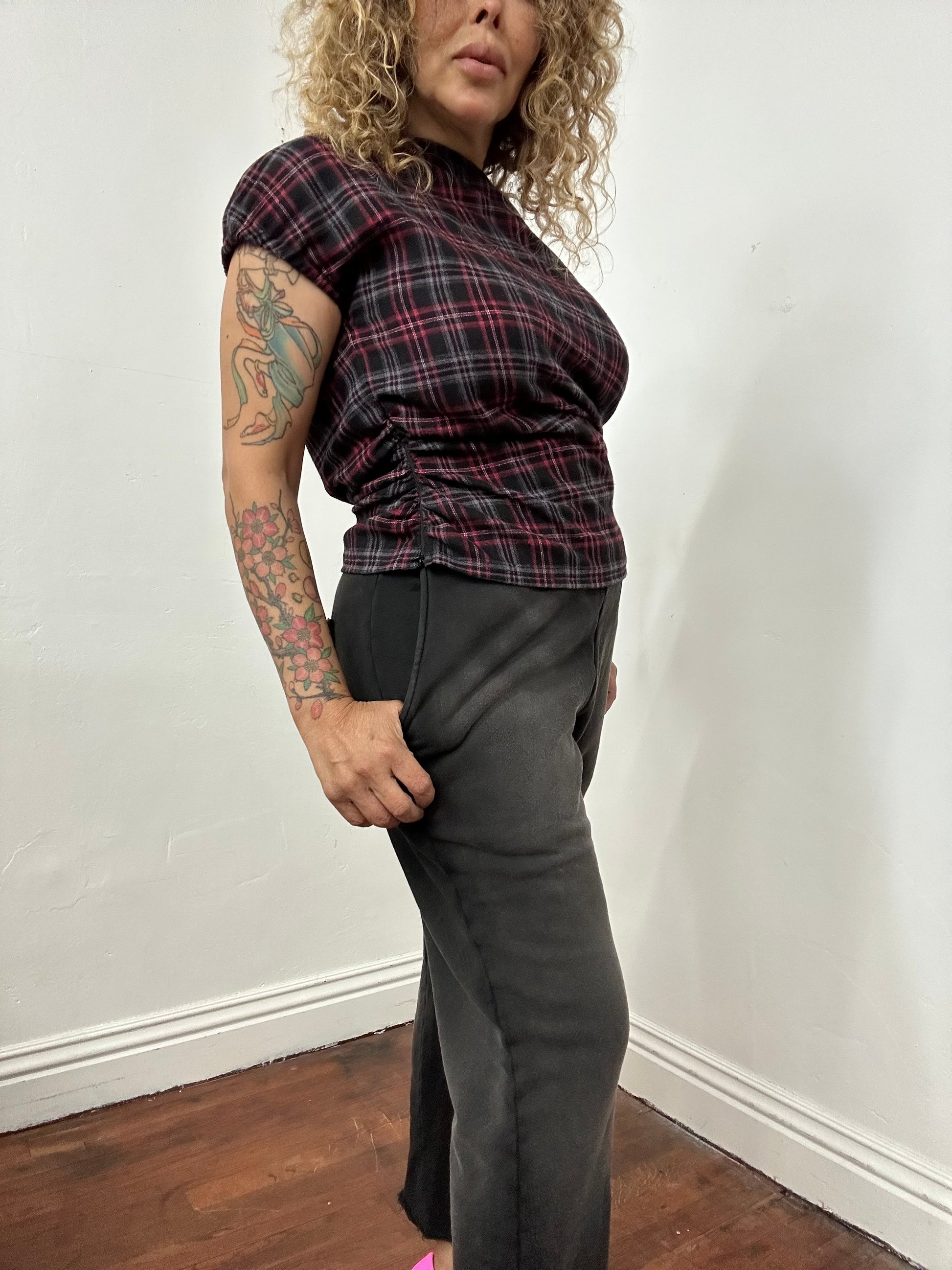 Off shoulder side elastic rushed top