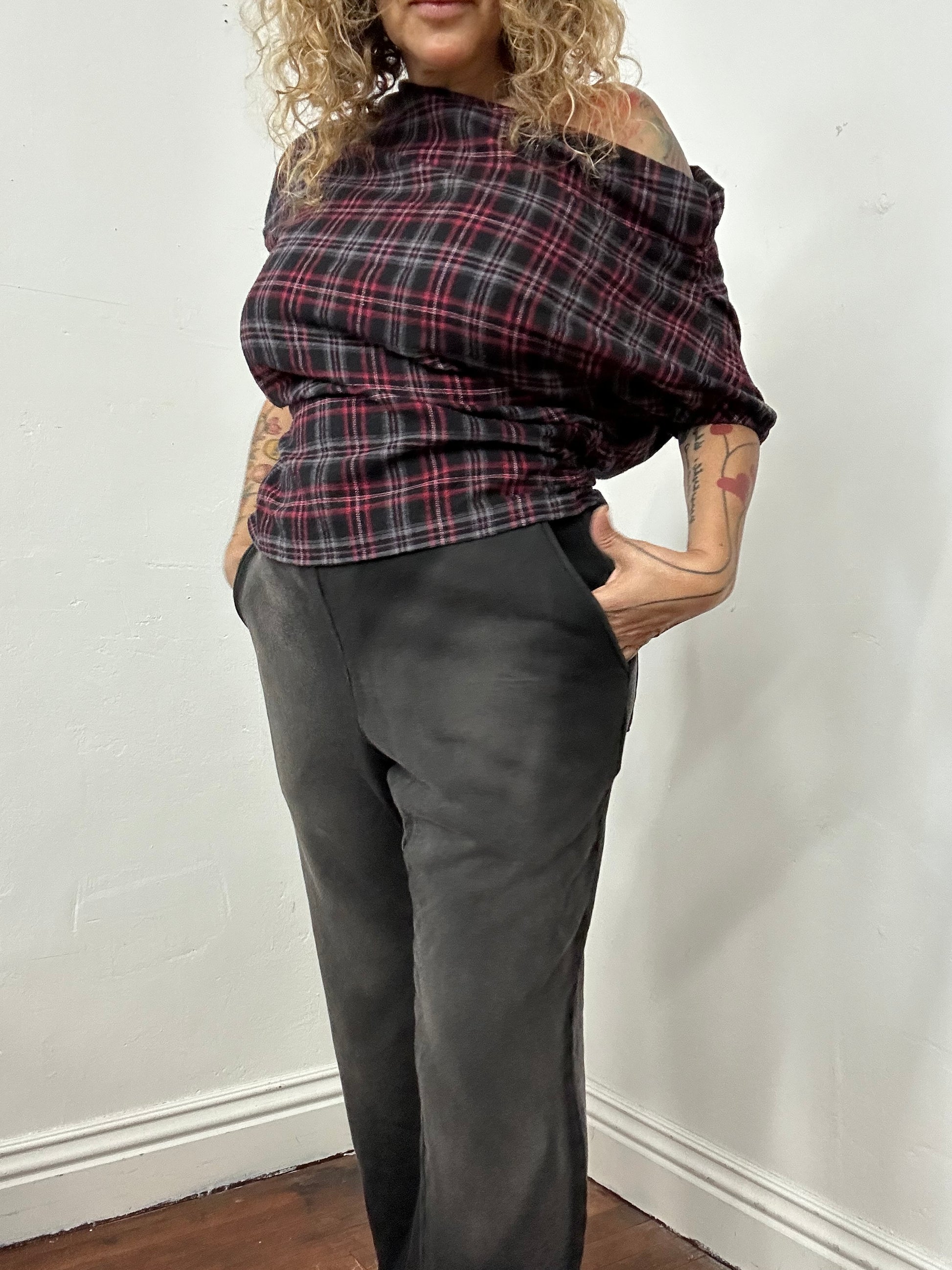 Asymmetric Off shoulder, side elastic and arm opening with rushing